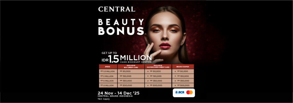 Central BEAUTY BONUS – Enjoy Up to IDR 1.5 Million Cashback on Your Beauty Favorites For beauty lovers planning to refresh their skincare or makeup collection this season, now is the perfect time! CENTRAL proudly presents BEAUTY BONUS, an exclusive reward program where you can earn up to IDR 1,500,000 in cash discount coupons. This […]