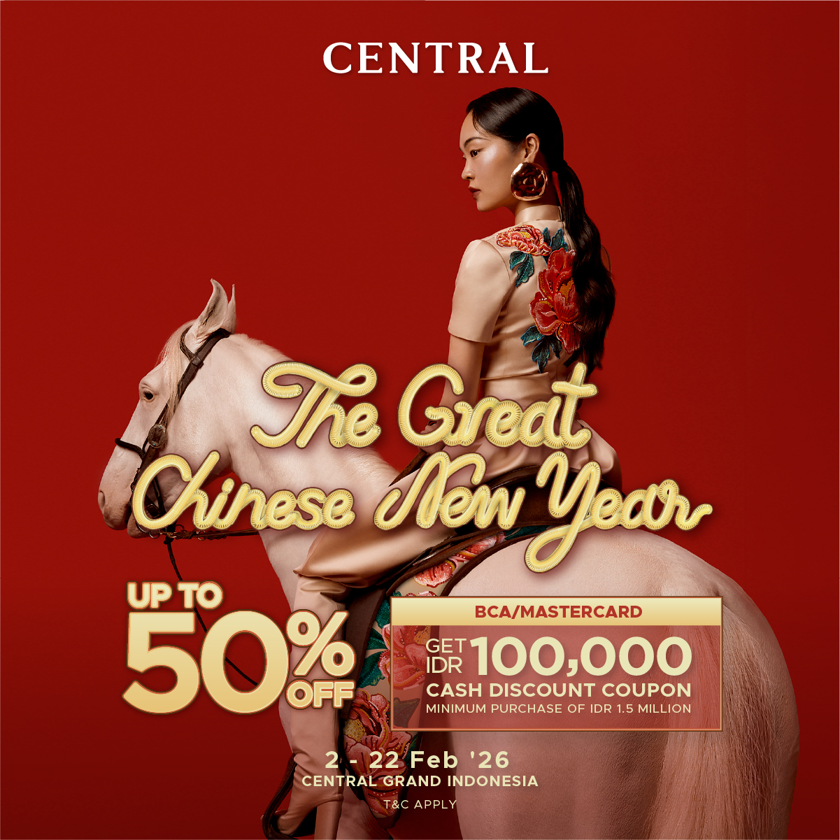 The Year of the Fire Horse has arrived, bringing with it a spirit of courage, passion, and unstoppable momentum. At Central, we’re celebrating this dynamic new year with The Great Chinese New Year—a storewide campaign designed to reward every purchase with prosperity, exclusive gifts, and experiences that honor tradition while embracing the future.