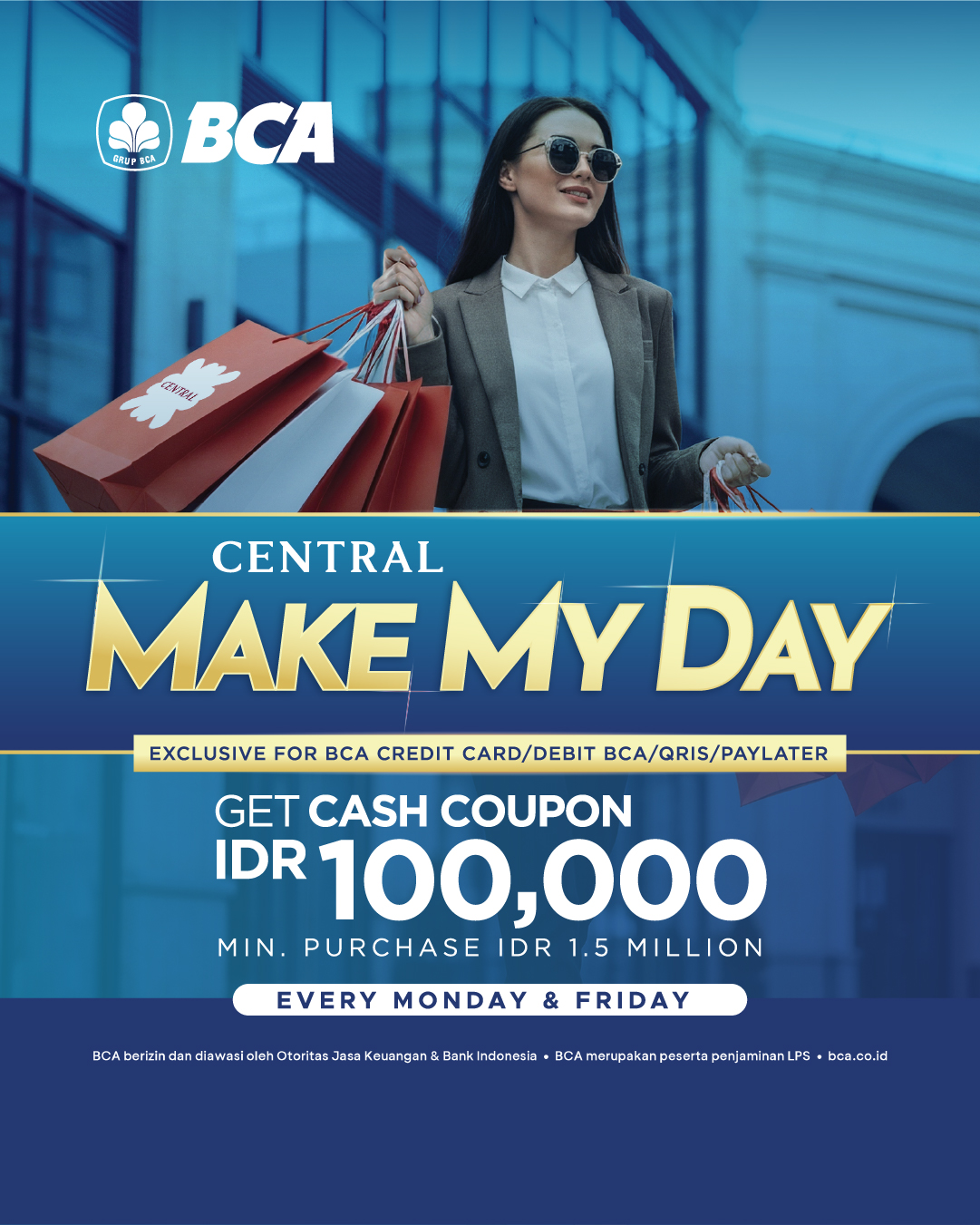 Are you ready to make your day a little brighter? We’ve got an exciting offer for you! With our BCA Make My Day campaign, you can enjoy a cash discount coupon of IDR 100,000 with a minimum purchase of IDR 1,000,000 every Monday and Friday.